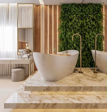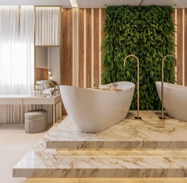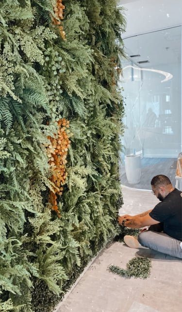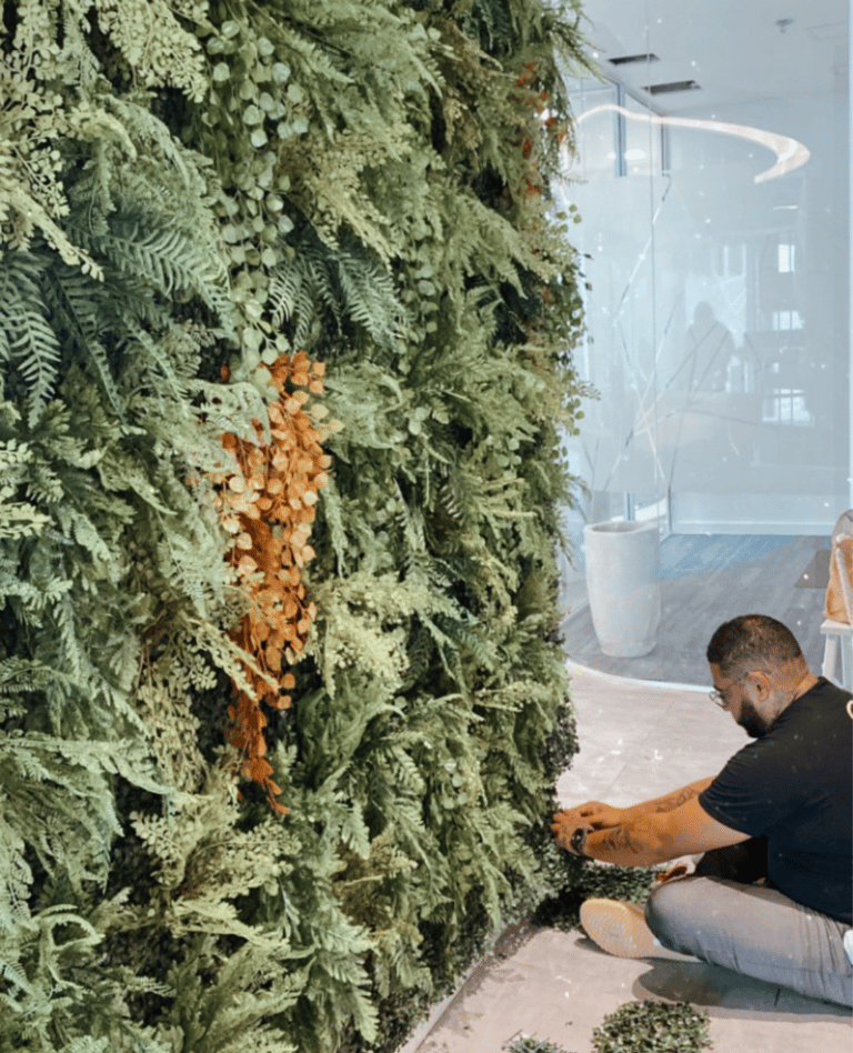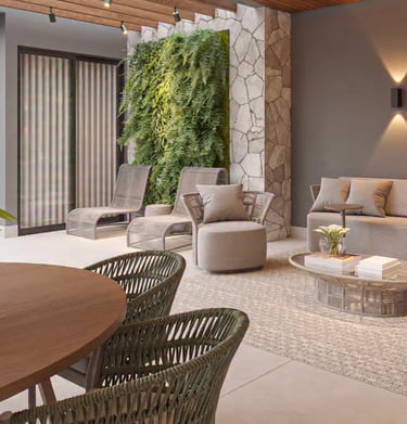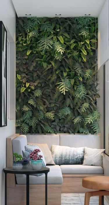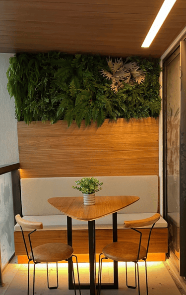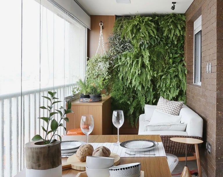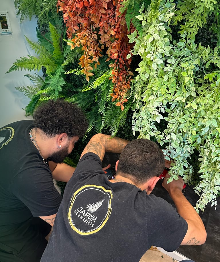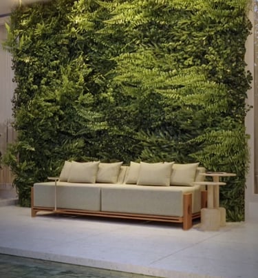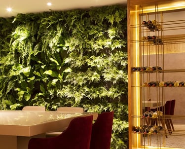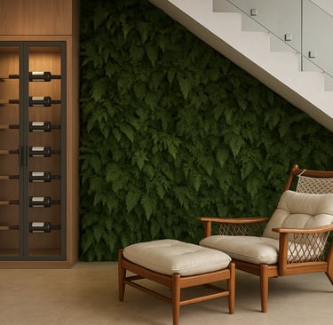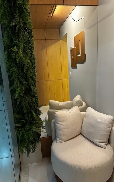 Ao incorporar um jardim vertical artificial, esse ambiente ganha charme e sofisticação imediata: o verde transmite frescor, modernidade e equilíbrio, sem a necessidade de manutenção constante.